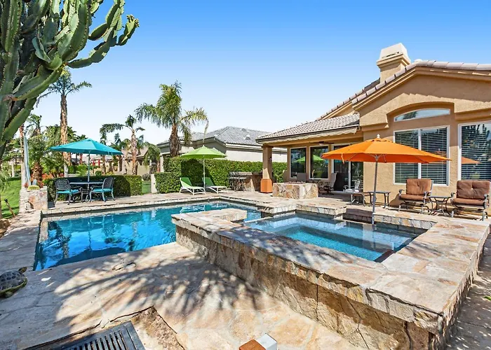 The 3-bedroom Desert Delight Permit #00,4418-2024 Cathedral City villa is located around 10 minutes by car from the Palm Springs Dog Park and provides horse riding, bowling, and cycling for active guests. Located 4.5 km from Big League Dreams Sportsplex, this Cathedral City holiday home boasts a patio with views of the mountain.
